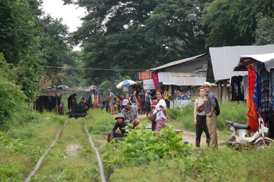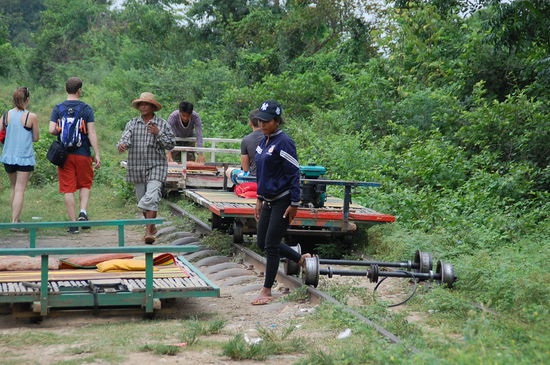 Dann sind wir einige wenige Kilometer ausserhalb Battambang gefahren, um zum Dorf zu fahren, wo der Bamboo Train fährt.