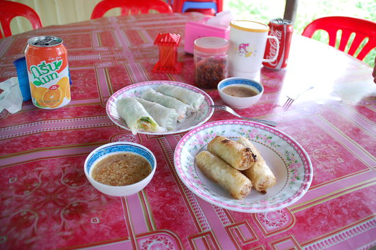 Hier haben wir jeder 2 frische und 2 frittierte Frühlingsrollen gegessen. Ich fand beide Varianten sehr lecker, Jürgen eher die frittierten.