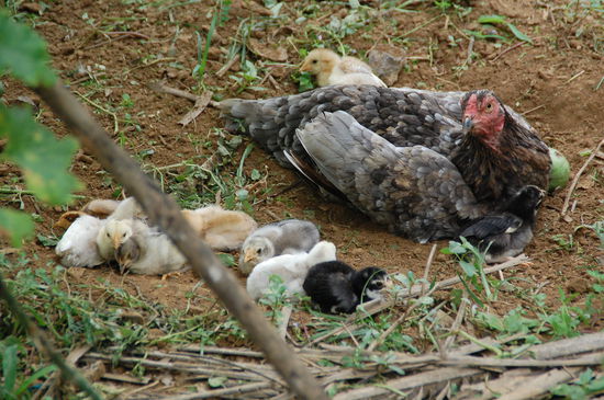 Nun haben wir als erstes bei einer Familie gehalten, die auf der einen Seite Reisnudeln herstellt und auf der anderen Seite des Schuppens grosse Tontöpfe als Wasserauffangbehälter.