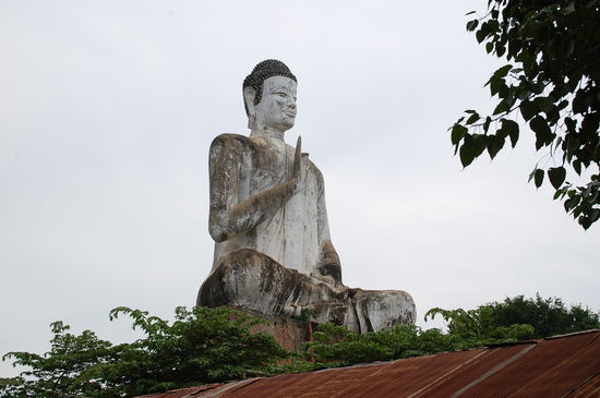 Zum Abschluss unseres Ausfluges sind wir dann noch zum Ek Phnom Tempel gefahren. Es gibt einen Riesenbuddha, der nicht fertig gestellt wurde und wahrscheinlich auch nie wird. Gemeinde will ihn abreissen, Bürger sind dagegen....
