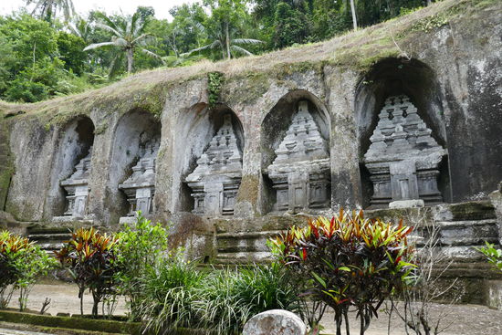 Gunung Kawi ist ein Bestattungstempel eines Königs und seiner Familie, den man über 286 Stufen, zuerst hinter, in einer Schlucht besichtigen kann. Das ganze mussten wir auch wieder hinauf. Soviel zum Thema Extremsport. Rechts und links von den Stufen gibt es Stände mit Souvenirs, Knochen und Holzschnitzereien, Schmuck und kalte Getränke.