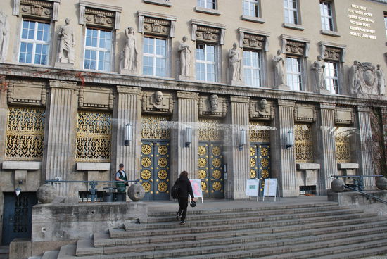 DAS soll jetzt echt so aussehen, wie ein Buchdeckel - hmmm. Bücherregal aus den 70ern schon eher, ich würde gerne mal rein, denn da drinnen sollen alle Bücher Deutschlands stehen. Bzw. auf deutsch. Ich würde gerne mal nachsehen, ob sie meine Lieblingsbücher auch parat haben. Nächstes Mal...