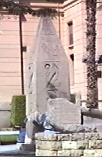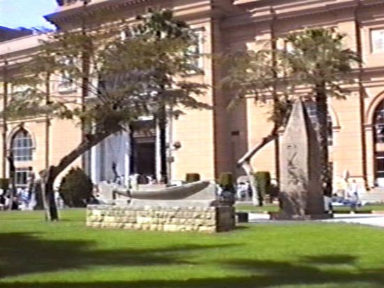 Nach mehr als zwei Stunden sind wir völlig geschafft und blicken im wahrsten Sinne des Wortes nicht mehr 'durch'. Aber im kleinen Park vor dem Museum darf ich wieder filmen. Zahlreiche Skulpturen , Stelen, Obeliske sind dort aufgestellt.