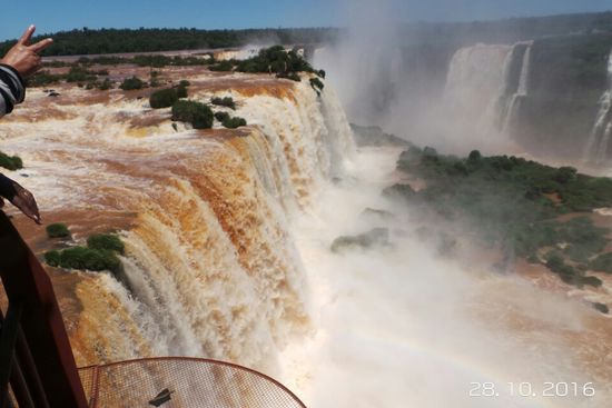 Wir sind auf der brasilianischen Seite, hier sind Stege gebaut worden. Beim Begehen wird man ordentlich nass.