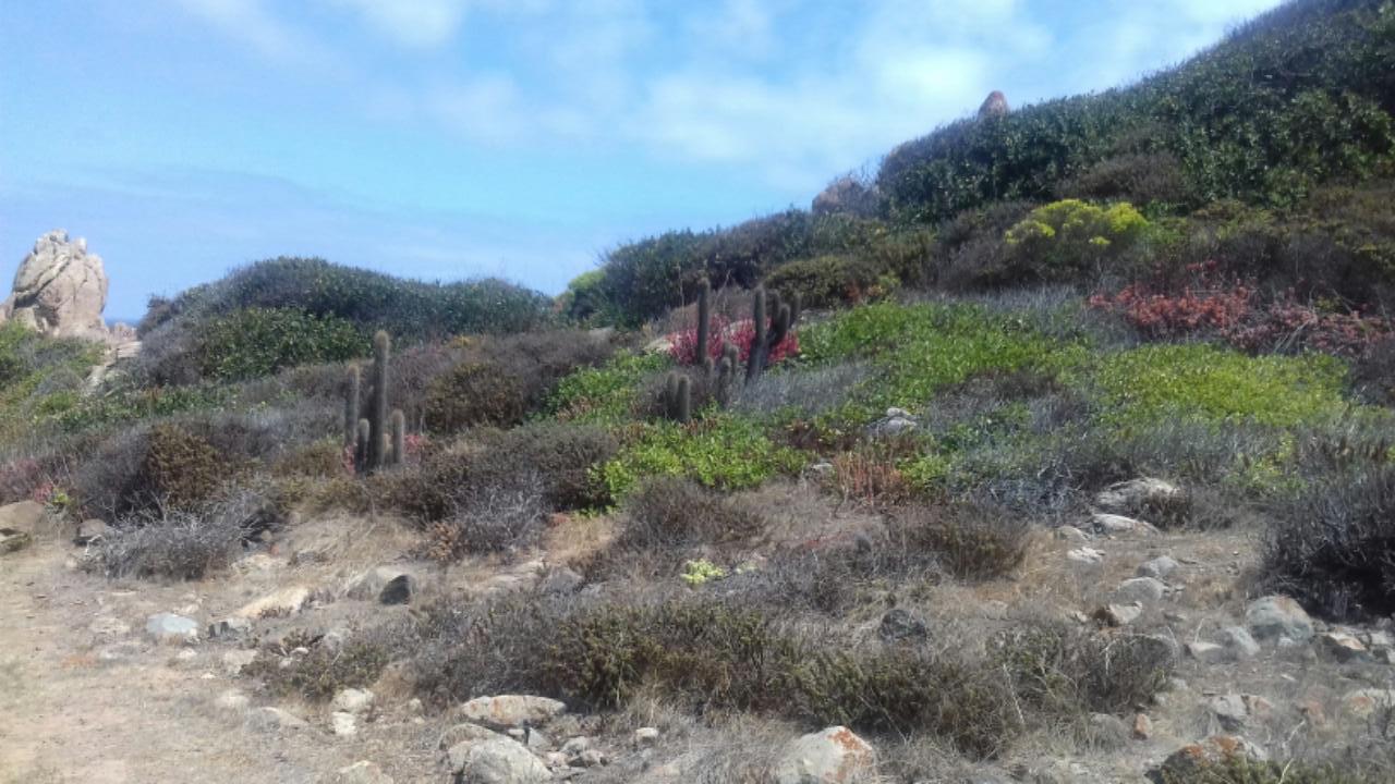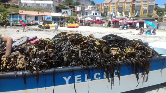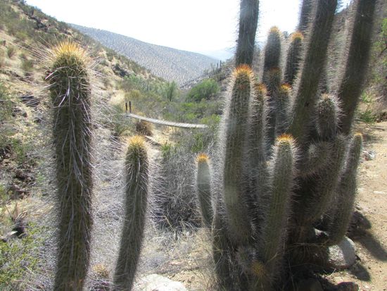Aber das Wasser (15 Grad) ist zum Baden noch zu frisch. Am Strand schauen wir den Fischern zu, wie sie ihre Tangernte an Land ziehen. Vielleicht überwinden wir uns mal und probieren das angeblich gesunde Zeug. Wir unternehmen noch eine Wanderung im benachbarten Naturpark La Puquen an der Steilküste. Hier gibt es verschiedene Kakteenarten und Wüstenblumen zu bewundern. Nur die Fontäne, die hier 60 m hoch durch eine Felsspalte hochschiessen soll, sehen wir nicht - es ist gerade Ebbe.