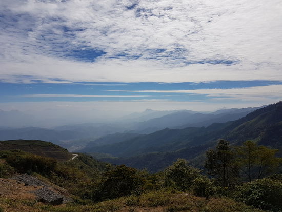 Jetzt aber erstmal zurück zu unserm unglaublichen Busfahrer. Schon eine Stunde und 20 Minuten nach der geplanten Abreise geht’s los. Die ganze Minibusbesatzung freut sich. Der Fahrer startet den Motor, legt den Gang ein und öttelt dann mit sagenhaften 20 km/h zur nächsten Tankstelle. Was auch sonst, vorher war ja auch keine Zeit den Tank ordentlich voll zu machen. O.k. nachdem auch das erledigt ist scheint es wirklich loszugehen. Die Straßen sind zunächst ohne nennenswerte Schlaglöcher, aber was soll ich sagen, die Geschwindigkeit mit der wir Reisen ändert sich nur unwesentlich. Wenn das so bleibt, brauchen wir mindestens sieben bis acht Stunden. Im Geiste nehme ich mir vor dem Knaben einige Fahrstunden zu spendieren oder noch besser; direkt selbst zu fahren. Ruckvolles Schalten, Stakato Bremsen sind nun unsere Begleiter… Wir kämpfen uns Bergpasse rauf, schlängeln uns durch enge Kurven und der ein oder andere Mopedfahrer überholt uns locker. Aber auch langsam geht’s vorwärts, die neue Passstraße tragt uns am höchsten Punkt auf über xy Meter und beschert uns bei der ersten Pinkelpause eine grandiose Aussicht. Weiter geht’s, jetzt aber ernsthaft mit riesigen Schlaglöchern. Die Regenzeit ist an der Straße nicht spurlos vorbeigegangen und fast wäre man dankbar für die umsichtige Fahrweise, wäre da nicht das grundlose Stakato Bremsen… Hilfe! Endlich erreichen wir die Ebene, ein weiterer Zwischenstopp bleibt uns nicht erspart. Im Restaurant gibt es vor allem eins: Lautstark singende Laoten, Boxen die einem das Trommelfell platzen lassen, aber egal. Wir bestellen die allseits gegenwärtige Nudelsuppe – stopfen uns Ohrstöpsel in die Ohren und warten auf die Weiterreise.