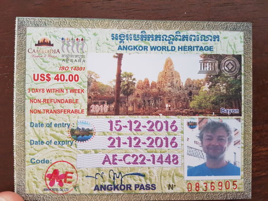 Da heute das Wetter bis zum Nachmittag trocken bleiben soll, machen wir uns mit unserem Tuktukfahrer aus dem Hotel auf die große Runde der Tempelanlagen. Angkor Wat ist die größte Tempelanlage der Welt und man sollte sich auf jeden Fall mindestens drei Tage Zeit nehmen um die wichtigsten Dinge zu sehen (und da sind noch nicht die Doppelbesuche bei unterschiedlichen Tageslichtmomenten dazugezählt). Es gibt hier nach österreichischer Skipassvorlage einen drei Tagespass den man innerhalb von 7 Tagen nutzen kann für 40$ (soll 2017 auf 80$ erhöht werden).