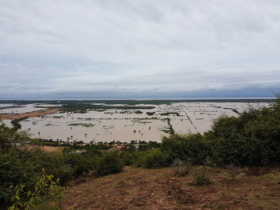 Wir drehen auf dem Absatz um und verlassen diesen dreckigen Ort. Einzig die Aussicht auf den TonleSap und das Umland war den Aufstieg wert.
