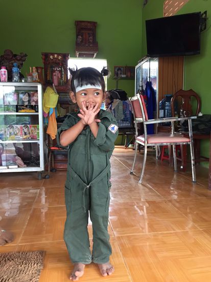Beim zweiten Stopp landen wir in einem offenen Friseursalon mit gleichzeitiger Suppenküche. Die Mädels hier scheinen alles zu können; Waschen, Schneiden, Legen und Nudeln kochen. Alles am Start, außerdem haben sie direkt vor der größten Pfütze der Welt ihr zwei Suppentöpfe aufgebaut und gefühlt jeder Dorfbewohner kommt auf dem Moped durch die Pfütze gebraust um Frühstück oder Mittagessen in einer kleinen Suppentüte mitzunehmen. So ganz genau weiß man es nicht. Die eigentliche Chefin in dem Laden ist aber ein dreijähriges Mädchen im Fliegeroverall, die alle anderen fest im Griff hat. Zucker. Der Regen scheint nachzulassen und wir treten wieder in die Pedale.
