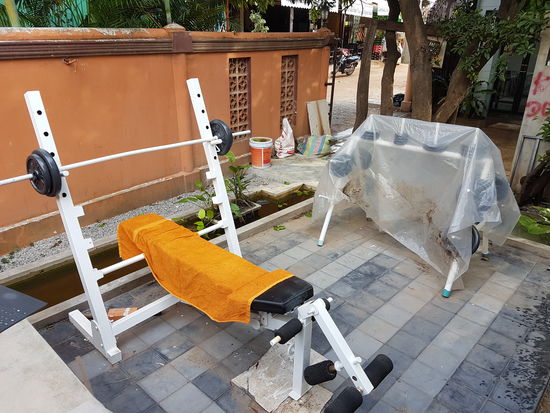 Den Nachmittag verbringen wir am Nachbarpool mit relaxen. Gegen Abend geht Anja nochmal ins Yoga und ich schmiede nach über 4 Wochen Trainingsabstinenz das erste mal wieder Eisen und mache etwas Bankdrücken auf dem Privatgym des Nachbarn.