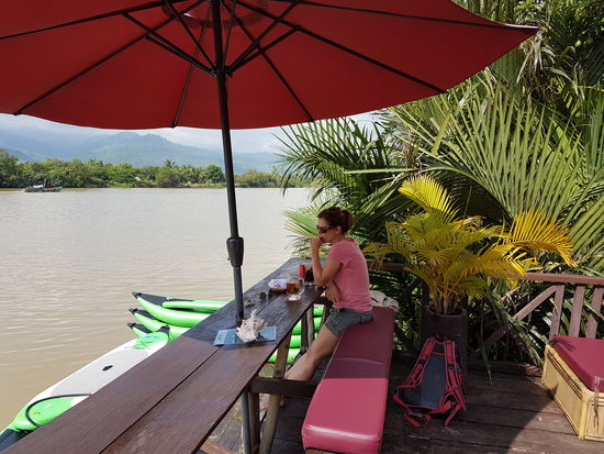 Da Kampot wirklich eine geselliges Örtchen ist, verbringen wir die letzten Sonnenstunden in einer schönen Bar am Fluss und regulieren unseren Flüssigkeitshaushalt mit Bier