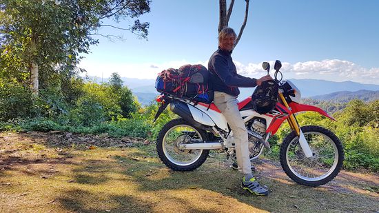 Er nimmt sich für fette 50 Euro am Tag eine schwere 500er Honda mit Seitenkoffern und ordentlich mehr Dampf als meine kleine Enduro. Aber jeder wie er will, schließlich fährt Daniel zuhause auch eine dicke BMW 650GS Reiseenduro und ich hab es damals nie über eine rallytaugliche KTM 620 Sportenduro geschafft.