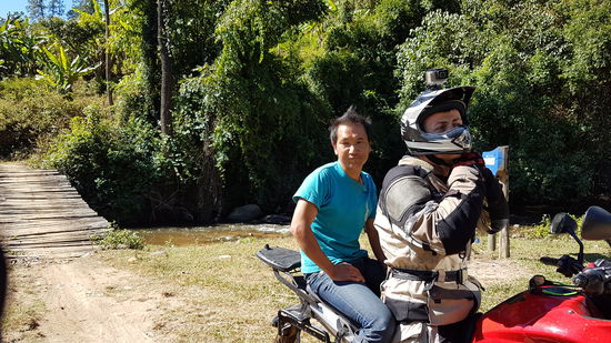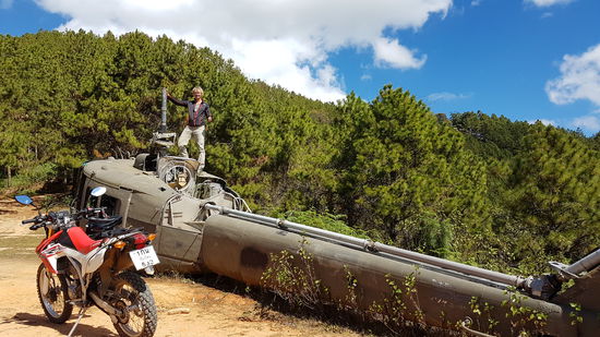 Um 08:00Uhr im Frühnebel geht es los auf unsere 104km Offroadpistentour zum abgestürzten Helikopter an der Grenze nach Myanmar. .