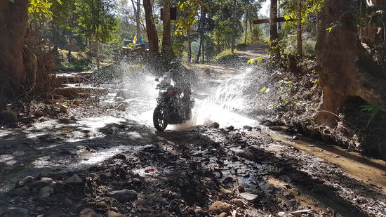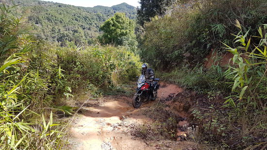 Aber es hilft ja nichts weiter geht’s. Die Strecke wird wieder etwas spannender, Erdrutsche und Ausschwemmungen verlangen alles an fahrerischem Können. Doch endlich nach 2 weiteren Stunden fahren wir in ein Dorf ein, bleiben beim nächsten Krämerladen stehen und trinken Wasser und Coke.