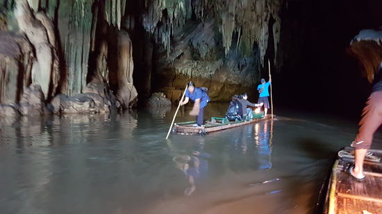 Auf dem Rückweg liegt die schöne Tham Lot Höhle. Da es noch zwei Stunden hell ist, wagen wir den Abstecher. Die Höhle ist riesig und gliedert sich in drei Hallen, bei der eine sogar mit dem Bambusflohs angefahren werden muss. Der Ausflug dauert eine Stunde, ist aber auf jeden Fall die Zeit wert. Die letzten 40km Rückfahrt sind dann entspanntes asphaltiertes Kurven bis nach Pai.