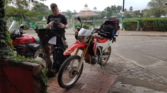 Endspurt ab hier geht es nur noch bergab und die Temperaturen werden je tiefer wir kommen angenehmer. Um 15:00 Uhr haben wir dann endlich Chiang Mai erreicht. In den Schuhen steht noch Wasser, aber die Hosen sind vom Fahrtwind schon wieder fast trocken.