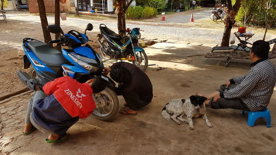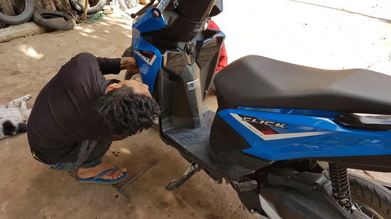 Danach kümmere ich mich um meinen geschrotteten Roller. Gegenüber der Travellodge gibt es auch einen Rollerhändler und den frage ich ob er was mit dem Schaden anfangen kann. So schnell konnte ich nicht schauen, da haben die Kerle mir das Teil abgeschraubt und mich um 13€ gebeten das sie das kaputte Teil beim Honda Händler neu kaufen könnten. Gesagt getan und schwubdiwups war das Ding wieder ganz. Für die Arbeitszeit stellte er mir 2€ in Rechnung, ich dachte das ist ein Witz, aber es war ihm tot ernst…krass.