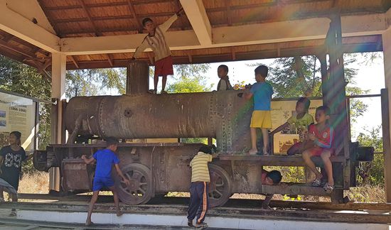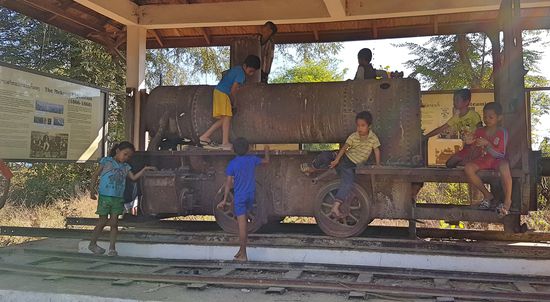 Der Auftakt ist eine alte Lokomotive der Franzosen, die aber nur noch als Spielplatz der Kinder dient.