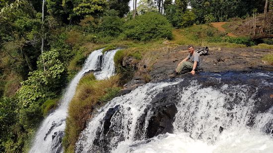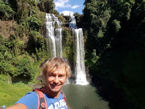 Kurz vor Ende der Strecke besuchen wir nur 800 Meter von der Hauptstraße entfernt, den Wasserfall Tad Fan.