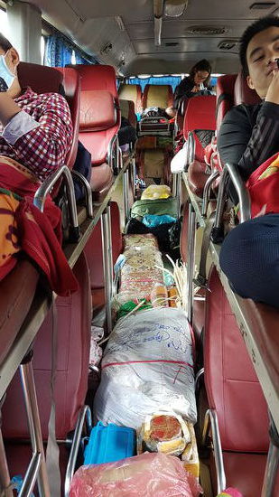 Um 05:30Uhr geht die Fahrt nach Da Nang (Vietnam) los. Super pünktlich werden wir von einem Minivan zum Busbahnhof gebracht. Dort steht unser VIP Liegebus parat, doch jetzt heißt es erstmal warten, denn das ganze Gepäck der mitreisenden Vietnamesen, erinnert eher an komplette Hausstände… unglaublich.