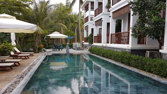 Unser Hotel “Palm River Villa“ am Ortsrand von Heu An, ist absolut Spitze. Super Zimmer, flatscreen LCD, Swimmingpool, kostenloser Fahrradverleih, sehr nettes und geschultes Personal und das Ganze für nur 21 Euro die Nacht, besser geht’s nicht.