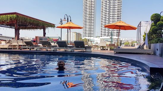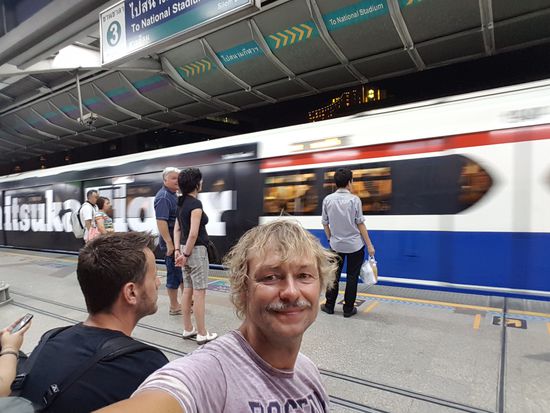 Eigentlich wollten wir bei Dunkelheit auf das höchste Gebäude Bangkoks, auf den Baiyoke Tower, aber bei meiner Internetrecherche bin ich bei den schönsten Rooftopbars Bangkoks hängengeblieben und so machen wir uns anfangs mit dem Boot und danach mit der Metro auf zum Banyan Tree Hotel.