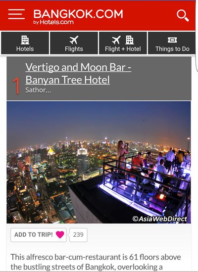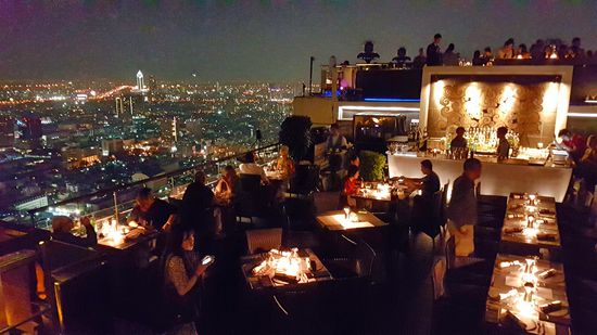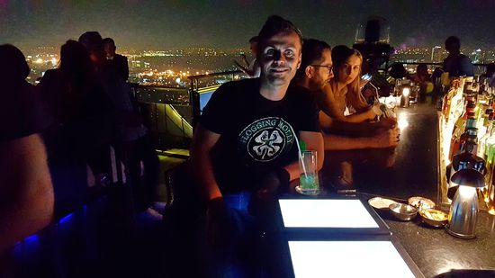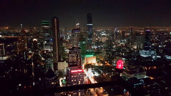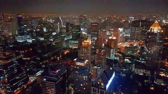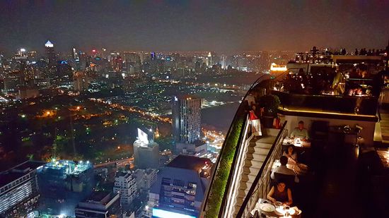 Im 61 Stock des Banyan Hotels ist die Bar VERTIGO MOONLIGHT mit sensationellem Blick über Bangkok. Wir sind mächtig beeindruckt als wir über eine Treppe hinauf in den freien Himmel zur Bar steigen, es ist so cool hier oben.