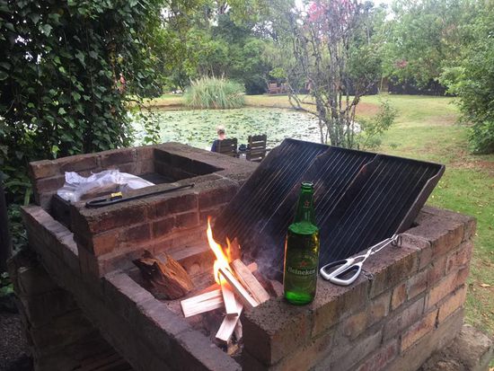 Nach einer schönen Dusche fahren wir Fleisch kaufen, da wir heute noch den Braai nutzen wollen ehe es morgen schon wieder weiter geht. Wie schon von vielen angekündigt ist Rind nicht teuer und schmeckt fantastisch. Erst Recht vom mit Holz befeuerten Grill Mit einer Flasche Windhoek sitzen wir am Teich bis es dunkel wird. Wieder sind wir echt platt und fallen früh ins Bett. Aber da wir morgen wieder früh los wollen passt es ja gut. Gute Nacht!