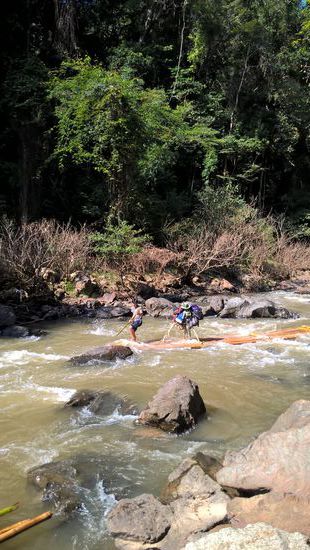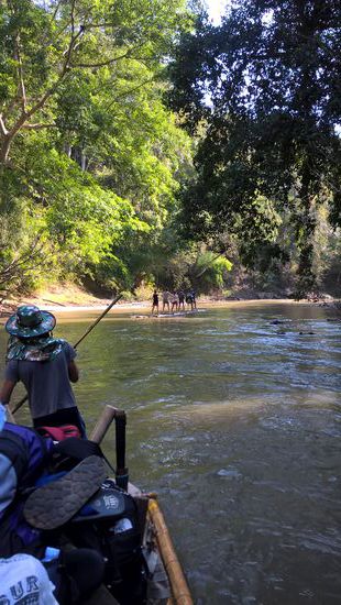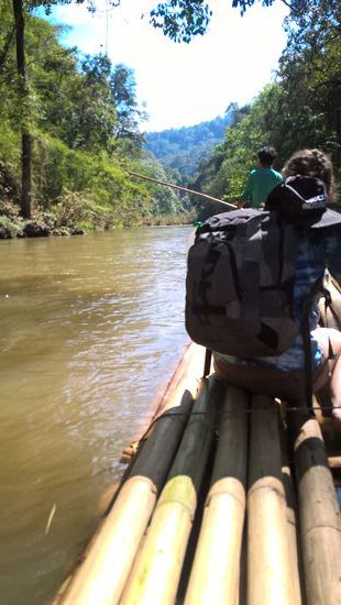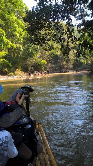 Mit unseren halbfertigen Floß fahren wir ca.1Stunde bis zum nächsten Halt, einem Elefanten Camp wo wir eine Mittagspause einlegen.