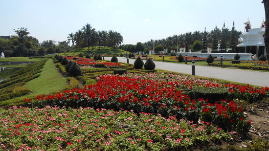 Die beiden, auch in unserem Ressort wohnenden , jungen Mitwanderinnen aus Deutschland wollten den" Royal Park Rajapruek besuchen". Spontan beschlossen wir mit ihnen dorthin zu fahren.