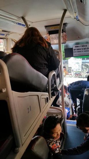Abends habe ich dann gepackt und am nächsten Tag ging es schon um 7:15 Uhr zum Bus. Auch hier wieder: einchecken und Gepäck-Bänzel dran, rechtzeitig rein in den Bus und pünktlich um 8 Uhr starteten wir: 8 Stunden mit dem sleeper-bus nach Ho-Chi-Minh-City. Und ich finde diese Art zu reisen absolut großartig! Allein schon die Beine über die Zeit ausstrecken zu können, ist mein persönliches Highlight. Wenn man dann noch oben liegt (was ich favorisiere), kann man auch die Gegend betrachten und bei Bedarf Fotos machen (wozu ich allerdings diesmal keine Lust hatte).