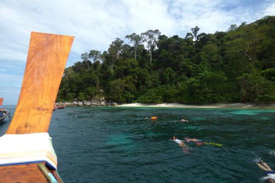 Am Heiligabend haben wir dann mit der kompletten Gruppe (8 Personen) einen Boattrip gemacht. Ein Longtail nur für uns und die "Kapitäne" fuhren uns dann zu schönen Schnorchelplätzen und Stränden. Vorher war ich noch nie schnorcheln (unglaublich, ich weiß, aber so ist es eben ) und war total beeindruckt, wie großartig das ist! Bunte Fische (wie aus dem Nemo-Film ), Korallen, Wesen mit langen schwarzen Stacheln und sogar eine Moräne habe ich gesehen. Das Wasser ist hier so glasklar, das ist einfach nur toll!!