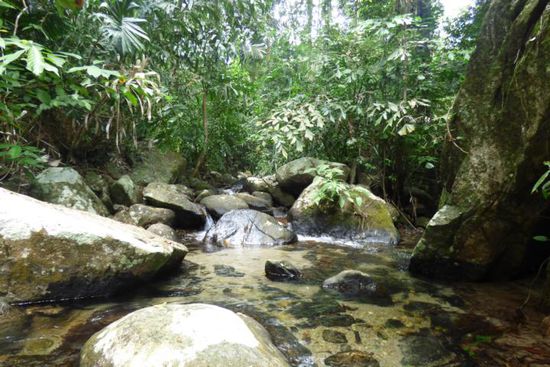 ...auf dem Weg zum Bach... - riesige Bäume und Felsen...