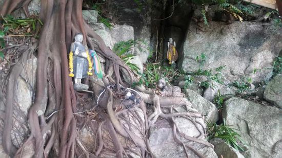 Auf einer der vielen Inseln haben wir unser mitgebrachtes Mittagessen verzehrt: Fried Rice mit Ei. Eigentlich hatten wir auch geschnittene Ananas mit, aber nach unserer Rückkehr von einem kleinen idyllischen Bach inmitten des Waldes, mussten wir feststellen, dass die dortigen Affen sich ebenfalls ein Mittagessen gegönnt hatten: unsere Ananas! Die beiden „Kapitäne“ waren mit uns im Wald beim Bach und so war das Boot unbewacht, was die Affenbande scheinbar beobachtet und gleich ausgenutzt hat. Fein säuberlich haben sie ein Loch in die Tüte und die Styropor-Verpackung gepult und sich fast die kompletten 3 aufgeschnittenen Ananas einverleibt……die Schlingel! Und weil das noch nicht genug war, lungerten sie anschließend nach unserem Fried Rice und kamen ganz dreist immer dichter. Wir konnten gar nicht in Ruhe essen! Einer der Bootsführer war uns dann behilflich und hat die Bande verscheucht