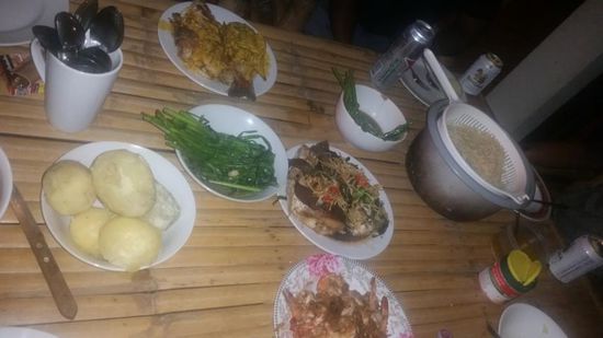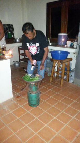 Einmal haben wir schon alle gemeinsam bei M&C gegessen und Siam hat fantastisches Curry und „Morning Glory“ gekocht, Fisch gegrillt und es gab noch leckere Spaghetti mit Thunfischsoße dazu. Und das alles ohne Strom und im Wok auf dem Gaskocher zubereitet.