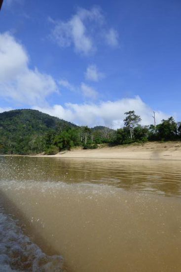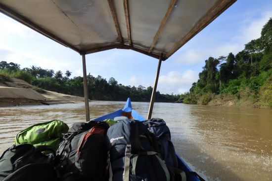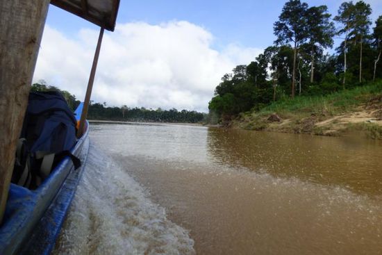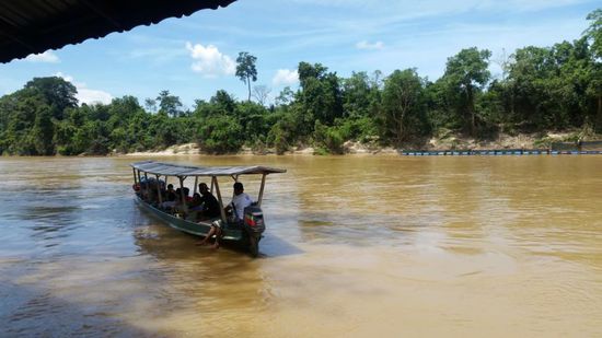Als unsere Boote kamen, wurden wir mitsamt Gepäck verteilt und dann ging es für die nächsten 2 Stunden auf dem Sungai Tembeling weiter nach Kuala Tahan und damit zum Taman Negara. Die Fahrt war beeindruckend! Auf dem Fluss fuhren wir an der unberührten Natur vorbei.