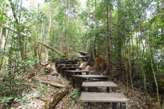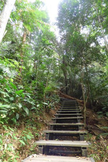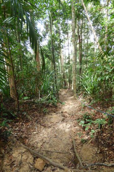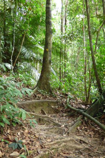 Mit dem Canopywalk hatte ich also meinen vorrangigsten „Auftrag“ erledigt – nun wollte ich noch mehr vom Wald sehen und die beiden fußläufig erreichbaren Hügel Bukit Teresek und Bukit Indah mit schönen Aussichtspunkten wurden meine weiteren Ziele.