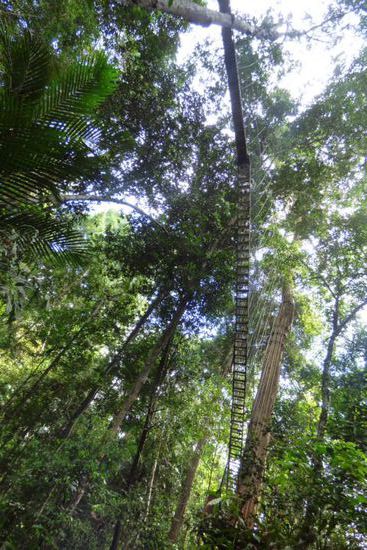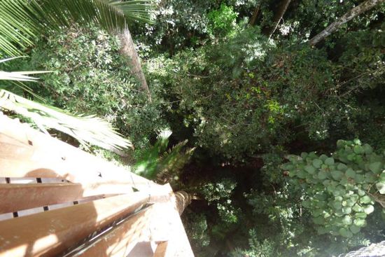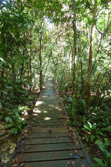 Los ging es! Mit einer großen Flasche Wasser, ein paar Keksen als Proviant, Regencape, Mütze, Moskitospray, langer Hose und festem Schuhwerk präpariert, lief ich über die Stege und befestigten Wege sowie vieeeeeeeeeeele Stufen bis zum Canopywalk.