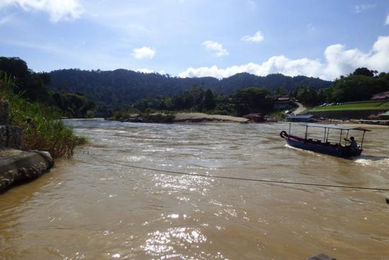 Der erste Ausflug führte mich zuallererst zum Canopywalk! Der Park befindet sich auf der gegenüberliegenden Seite des Flusses und von Kuala Tahan, doch das ist kein Problem, da den ganzen Tag kleine Boote hin-und herfahren. Für 1 RM die Fahrt wird man binnen wenigen Minuten auf die andere Seite gefahren.