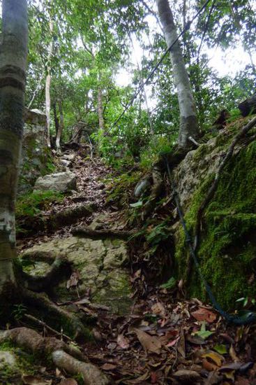 Ich kletterte und kraxelte mit und ohne Seil als Hilfestellung erneut Abhänge hinauf und hinunter sowie kleinere Felsen, musste Baumwurzeln und kleine Bäche sowie umgestürzte Bäume überwinden.