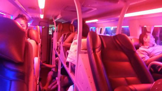 Wieder kann ich feststellen: es ist eigentlich gar nicht so unkomfortabel, wenn der Busfahrer nicht wie der letzte oder auch der erste Mensch fahren würde…es gab einige schärfere Bremsungen. Da es ein nagelneuer Bus war (der auch noch sehr intensiv danach roch), gab es auch keine Pipi-Pause (zumindest nicht für uns), da eine Bustoilette vorhanden war. Der pure Luxus.