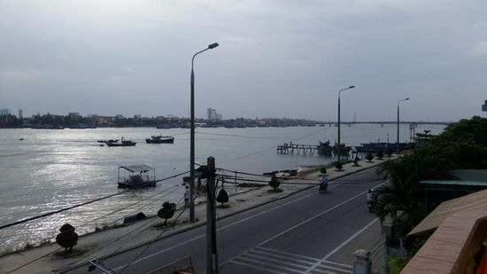 Allmählich war ich nicht mehr sonderlich amüsiert. Gegen 7:30 Uhr kamen dann zwei Mädels, die erst mal die „Lobby“ von Motorrollern, Fahrrad und Terrassentischen und –stühlen befreien mussten, bis sie mich hereinbaten. Und auch hier: Verständigung nur mit Händen und Füßen. Wenigstens bekam ich das einzige tolle Zimmer mit Balkon und Ausblick auf den Fluss.