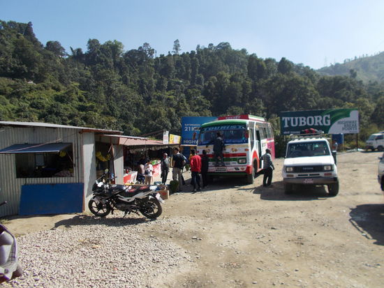 Am nächsten Tag ging’s dann endlich ins Trekkinggebiet. Geplant war, dass wir mit dem Bus innerhalb von 5 Stunden in Besisahr ankommen und dann mit einem Jeep eineinhalb Stunden weiter nach Bhulbhule fahren. Nachdem wir aber nach zwei Stunden grad mal aus der Stadt draußen waren, ahnten wir zum ersten Mal, dass das wohl nix würde. Ebenso ahnungslos waren wir ob der Tatsache, dass man uns noch für mehrere Stunden in einer ohrenbetäubenden Lautstärke mit nepalesischer Popmusik beschallen würde. Aber sei’s drum, die Busfahrt war sehr spannend für uns, weil wir ein bisschen was vom Land sehen konnten. Zumindest galt das für die ersten sechs bis sieben Stunden. Nach neuneinhalb Stunden waren wir völlig erschöpft und im Dunkeln in Bhulbhule angekommen. Überraschenderweise fuhr der Bus bis Bhulbhule durch. Man wundert sich wirklich, welche Straßen so ein nepalesischer Bus befahren kann. Hier in Deutschland hätte man Angst um seinen Jeep, aber in Nepal mit dem Bus, kein Problem.
