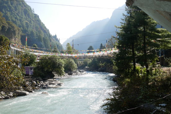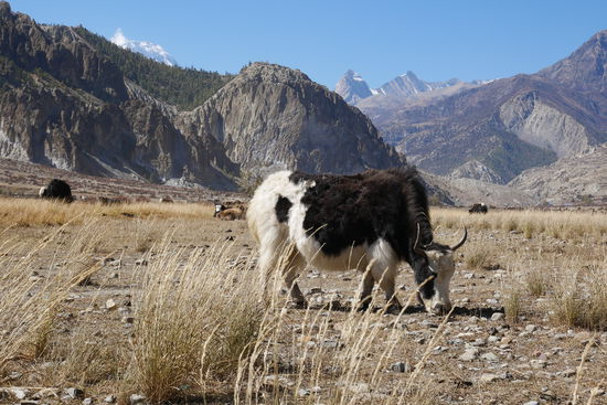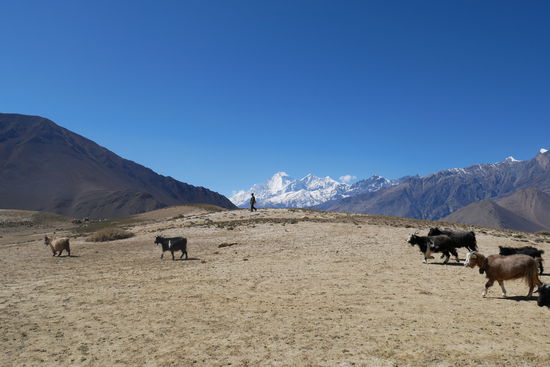 Bhraka war ein Glücksgriff für drei Übernachtungen. Zum einen liegt es wunderschön in einem breiten Tal, das wie eine Prairie anmutet, in dem überall Kühe, Pferde und Yaks grasen, zum anderen ist es viel verschlafener und ruhiger als das 30minütig entfernte Manang, wo die meisten Leute ihren Akklimatisierungstag einlegen.