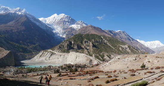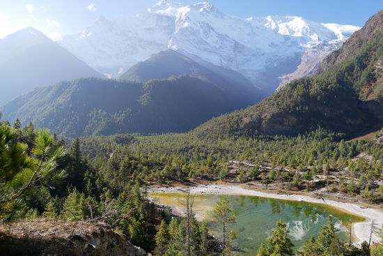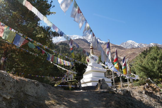 Als Akklimatisierung hatten wir uns die äußerst anstrengende Tour von Bhraka zum Ice Lake und wieder zurück sowie die Wanderung zu Milarepa’s Cave ausgesucht. Beide Touren waren sehr schön, wobei ich beim Aufstieg zum Ice Lake zum ersten Mal auf dieser Tour an meine Grenzen gestoßen bin. 1200 Höhenmeter von Meereshöhe aufsteigen ist schon anstrengend, aber von 3400 auf 4600m aufsteigen ist nochmal ne ganz andere Nummer. Aber begleitet von tollen Panoramen und einem Guide, der mit einer Engelsgeduld im Schneckentempo immer hinter mir geblieben ist, hab ich es geschafft.