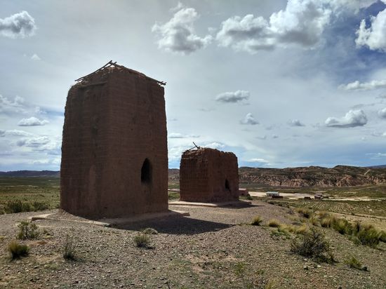 Wir fahren weiter durchs bolivianische Altiplano (Hochland). Ich hab mir einen Höhenmesser runter geladen, wir sind die ganze Zeit auf 3900 m. Sehen Chullpas (Grabtürme) aus Lehm und Stroh. Datiert auf 1200 - 1500 nach Christus. Mit Inhalt.