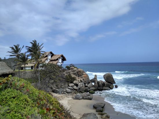 Mattes möchte unbedingt nach Taganga zum Tauchen. Die 220 km fahren wir direkt am Meer entlang. Leider erweist sich das kleine Taganga als nicht camper freundlich. Es findet sich kein Platz. Die Hitze ist extrem und man muss abends duschen. Tauchen ist abgesagt. Wir fahren nochmal 40 km weiter. In der Nähe vom Tayrona Nationalpark (größtes Küstengebirge) ist das Camping "Los Angeles". Ein Traum unter Kokusnusspalmen. Hier können wir relaxen und die letzten Tage im Hänger verbringen.