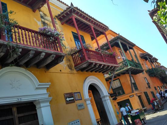soll die schönste Stadt Kolumbiens sein. Das historische Zentrum ist wirklich sehenswert. Es ist komplett von einer Stadtmauer umgeben. Die Gebäude sind aus dem 16. und 17. Jahrhundert und sehr gut erhalten. Bunt und mit all den Balkonen mit blühender Bougainvillea ist es sehr schön, da drin rumzuschlendern.
