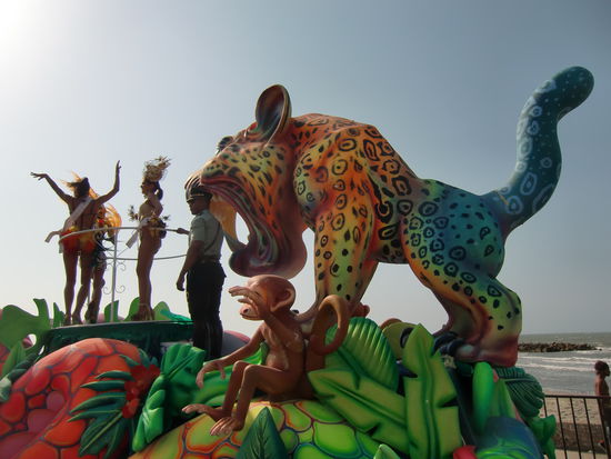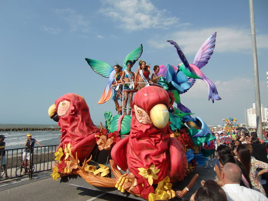 Auf dem Rückweg zum Hotel kamen wir in ein großes Spektakel. Mit Mottowägen, Tänzern, Sambagruppen und Musik. So, wie wir uns den brasilianischen Karneval vorstellen. Es ging aber (soweit wir das verstanden haben) um die Wahl der kolumbianischen Schönheitskönigin.