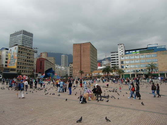 Nach gut einer Stunde Flug sind wir am Endpunkt unserer langen Reise angekommen, der kolumbianischen Hauptstadt Bogotá. Liegt in den Bergen auf 2700 m und ist klimatechnisch eher kühl und regnerisch. Nach der karibischen Hitze in Cartagena fast ein Schock. Zum Eingewöhnen ans deutsche Wetter aber wahrscheinlich eher geeignet. Laut Reiseführer gibt es hier nicht allzu viel zu sehen, aber wir begeben uns tapfer auf die letzte Stadttour.